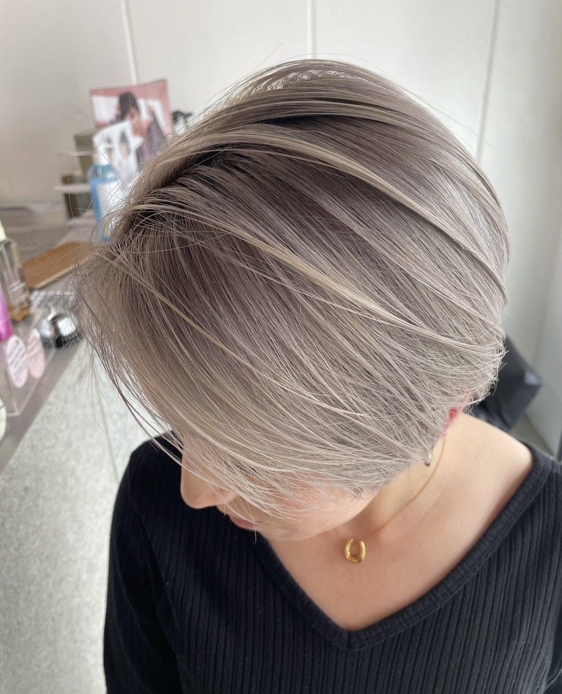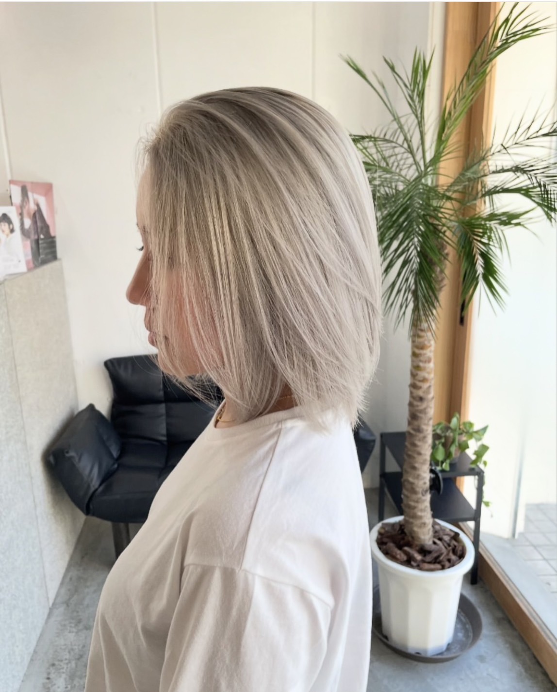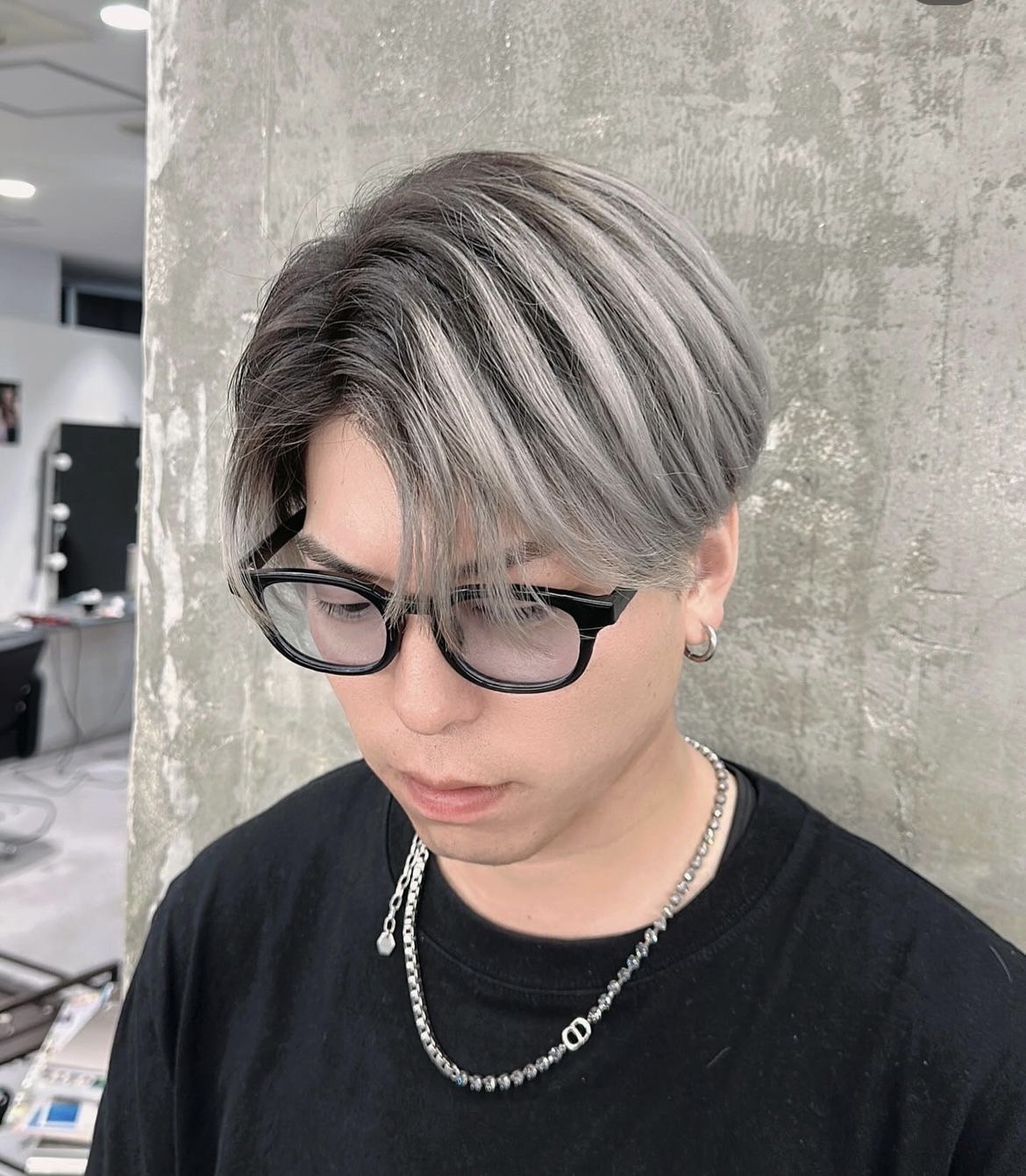 デザインカラー 白髪ぼかしハイライト オフィスで浮かないシルクハイライト ホワイトハイライト 外国人風スタイル メンズカット |
