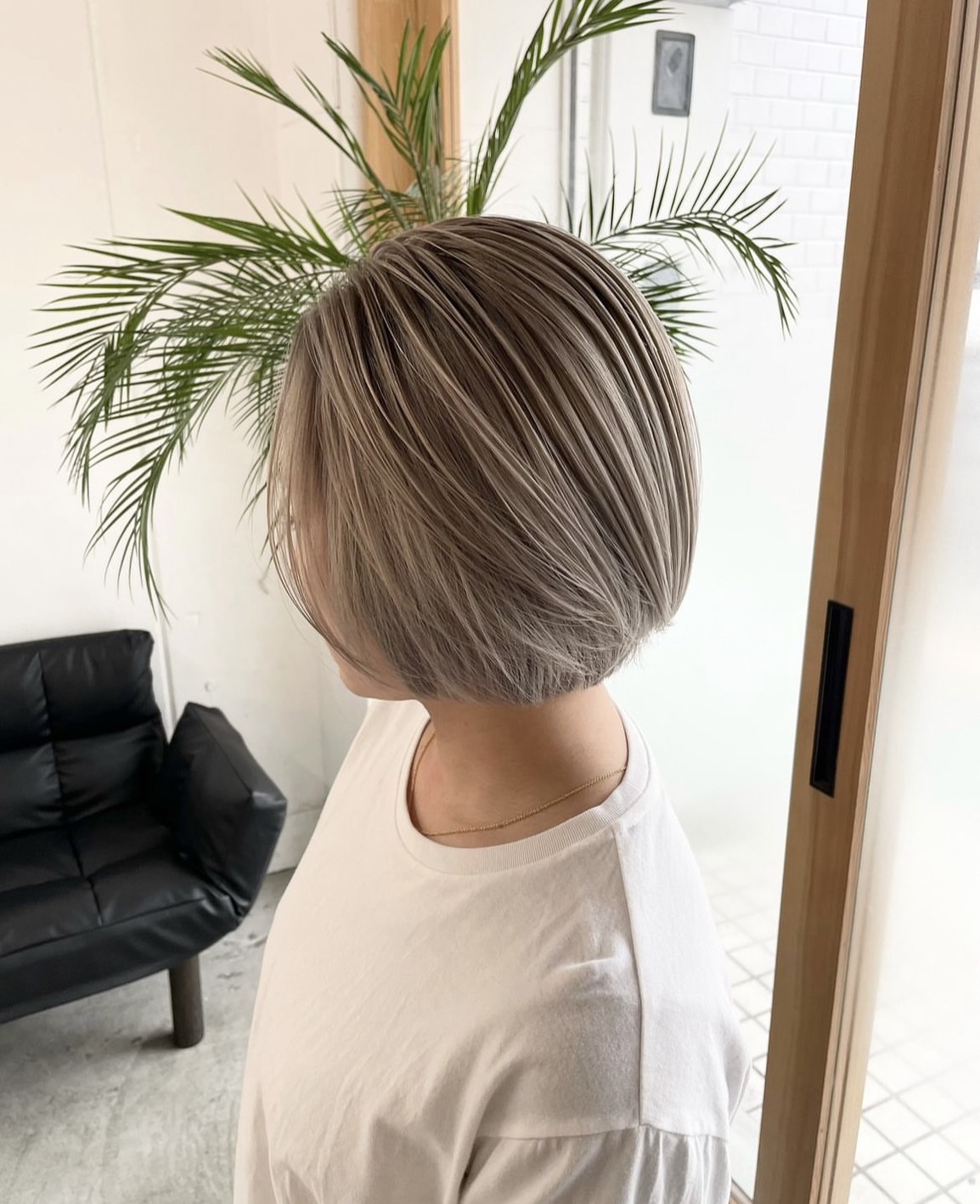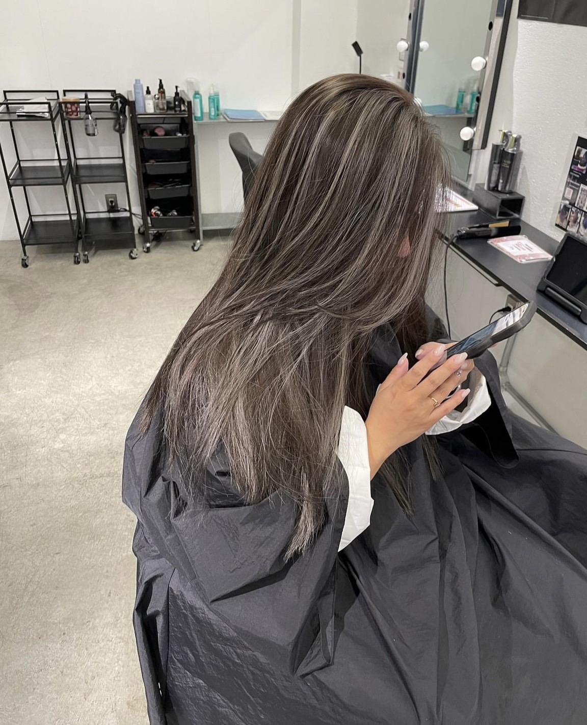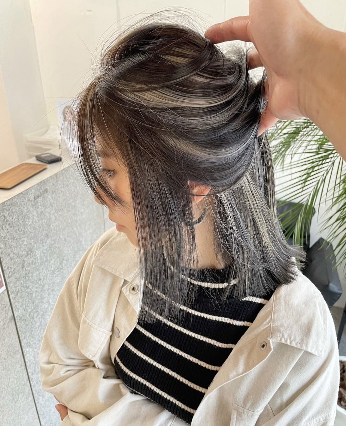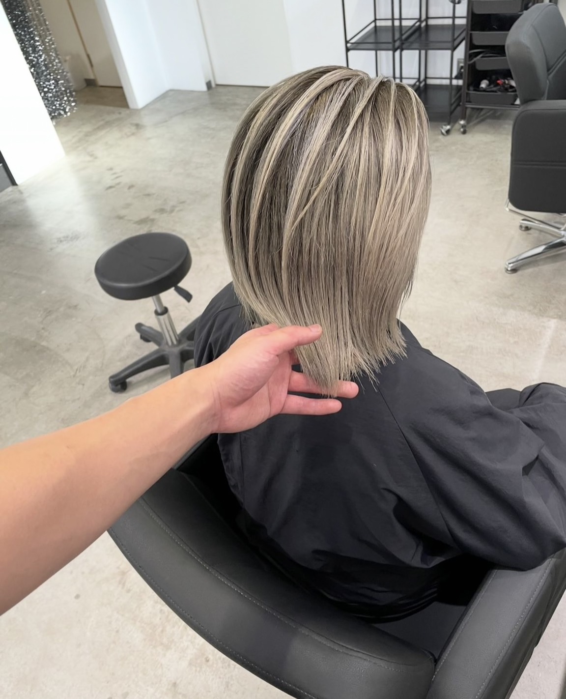 デザインカラー 白髪ぼかしハイライト オフィスで浮かないシルクハイライト ホワイトハイライト 外国人風スタイル メンズカット |